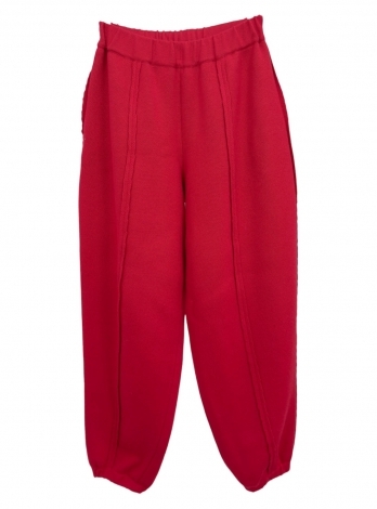 Брюки прямого кроя с декоративными швами из мягкой шерсти мериноса в красном цвете. Трикотаж хорошо держит свою форму, за счет широкого силуэта не вытягивается.