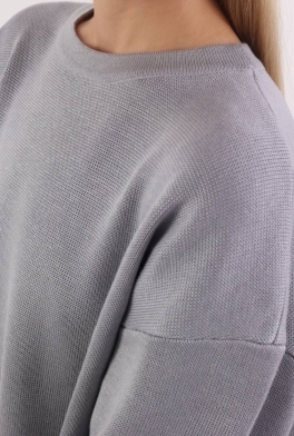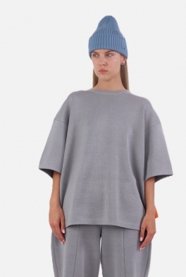 Футболка свободного кроя, плотная, насыщеного серого цвета. Связанная из мягкого смесового хлопка. Отлично сочетается с любым видом брюк, юбок или шорт.