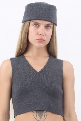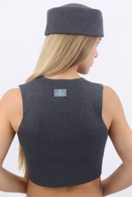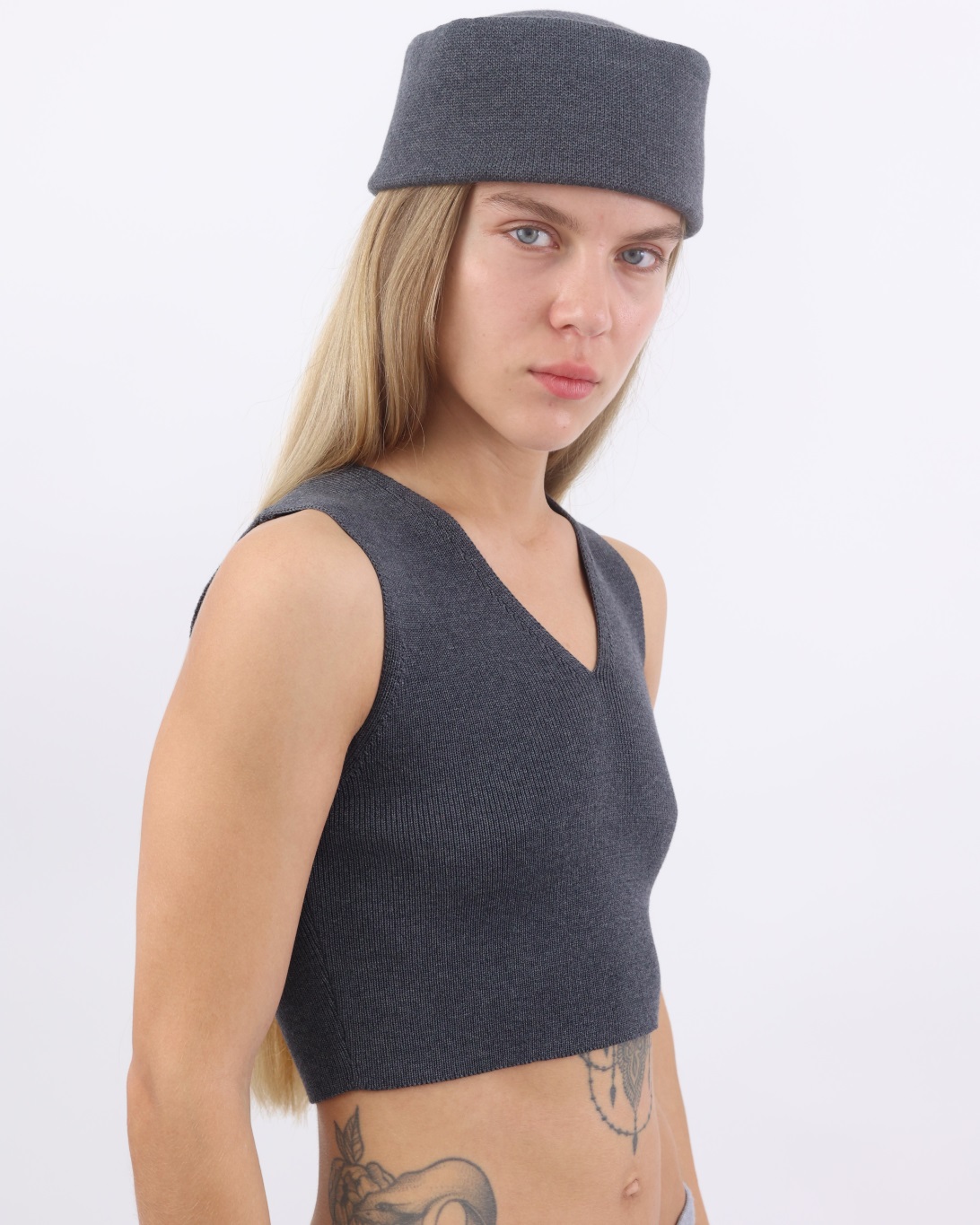 Базовый укороченный топ с V-образным вырезом в цвете темно-серый меланж. Связанный из мягкого смесового хлопка.