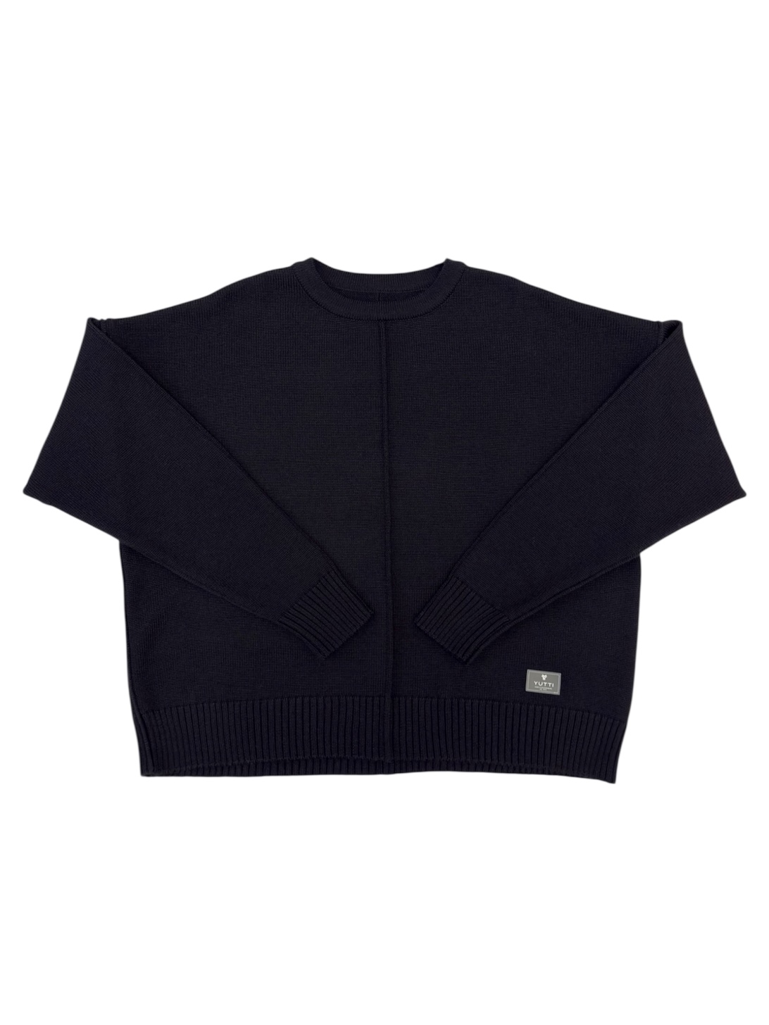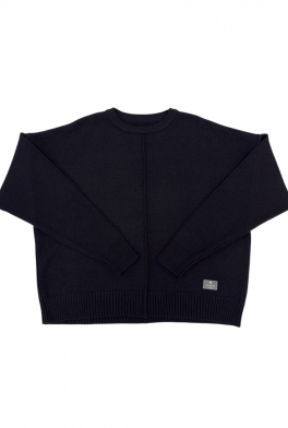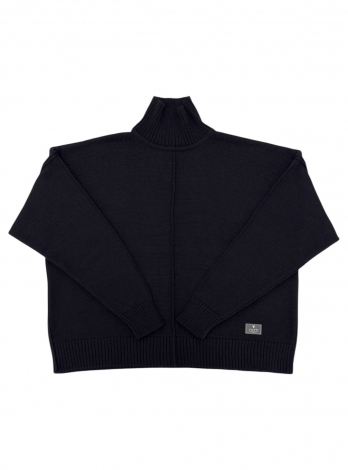 Укороченный джемпер с удлиненным рукавом и декоративными строчками в черном цвете. Связан гладью из мягкого смесовой шерсти мериноса.