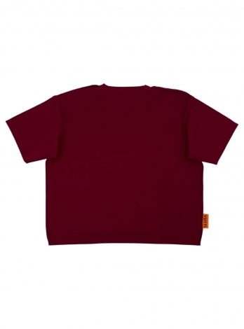 Укороченный джемпер с удлиненным рукавом и декоративными строчками в цвете марсала. Связан гладью из мягкого смесовой шерсти мериноса.