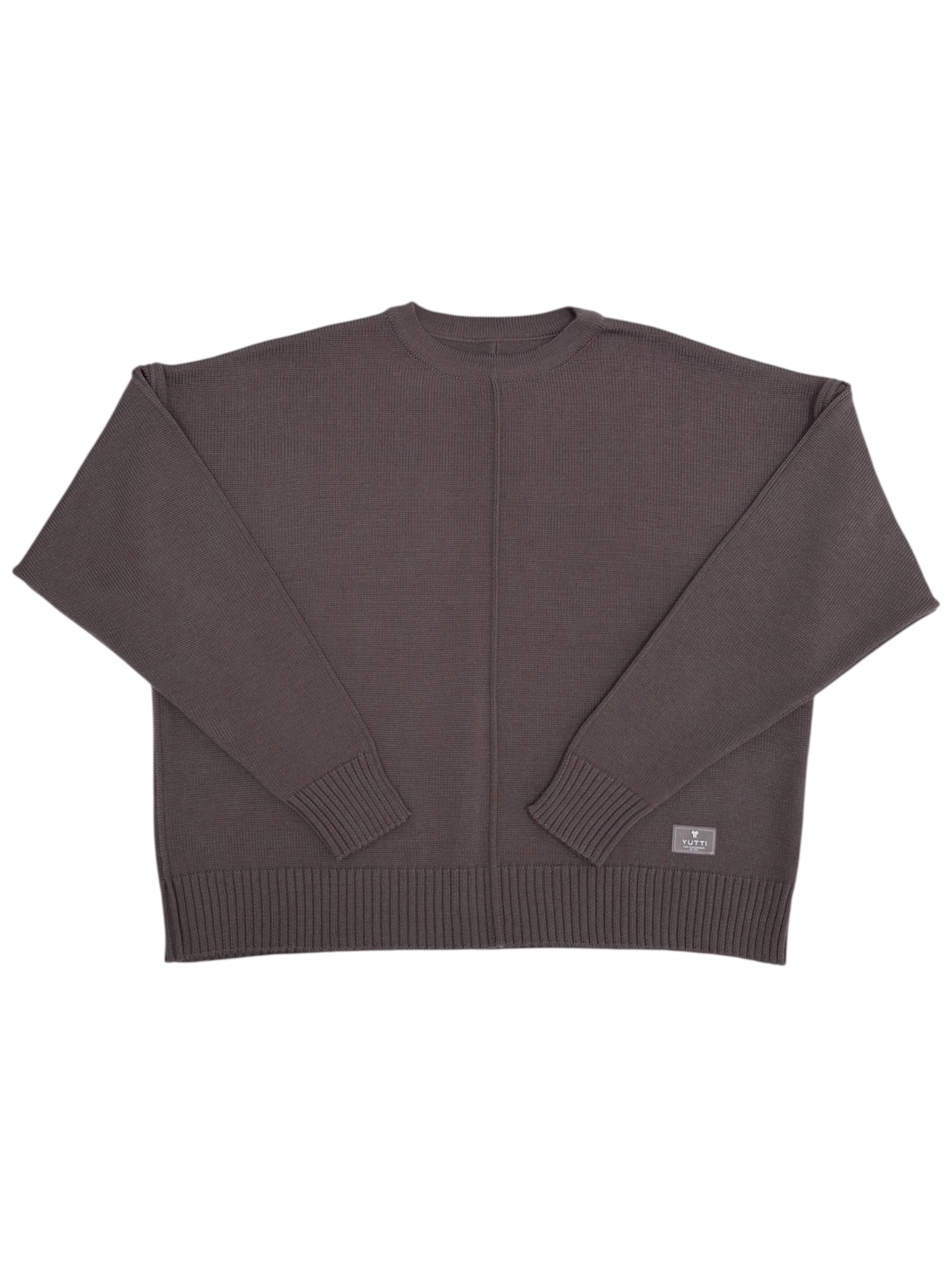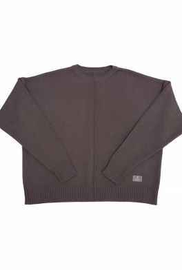 Укороченный джемпер с удлиненным рукавом и декоративными строчками в цвете какао. Связан гладью из мягкого смесовой шерсти мериноса.