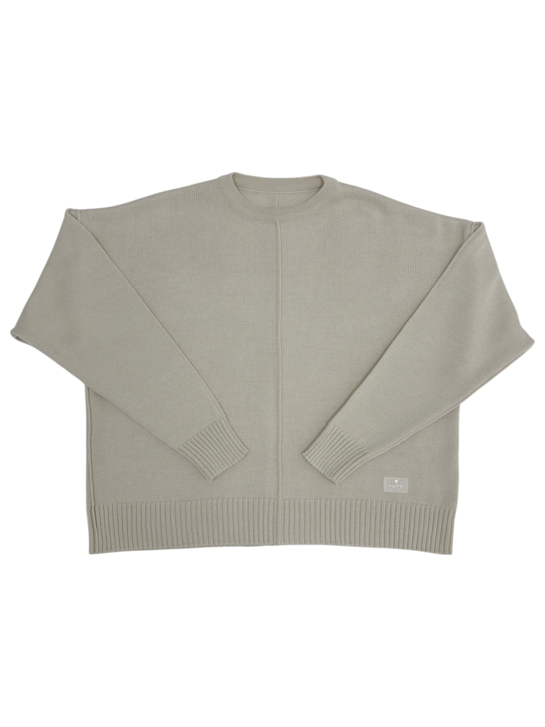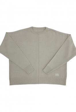 Укороченный джемпер с удлиненным рукавом и декоративными строчками в кремовом цвете. Связан гладью из мягкого смесовой шерсти мериноса.