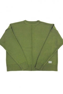 Укороченный джемпер с удлиненным рукавом и декоративными строчками в фисташковом цвете. Связан гладью из мягкого смесовой шерсти мериноса.