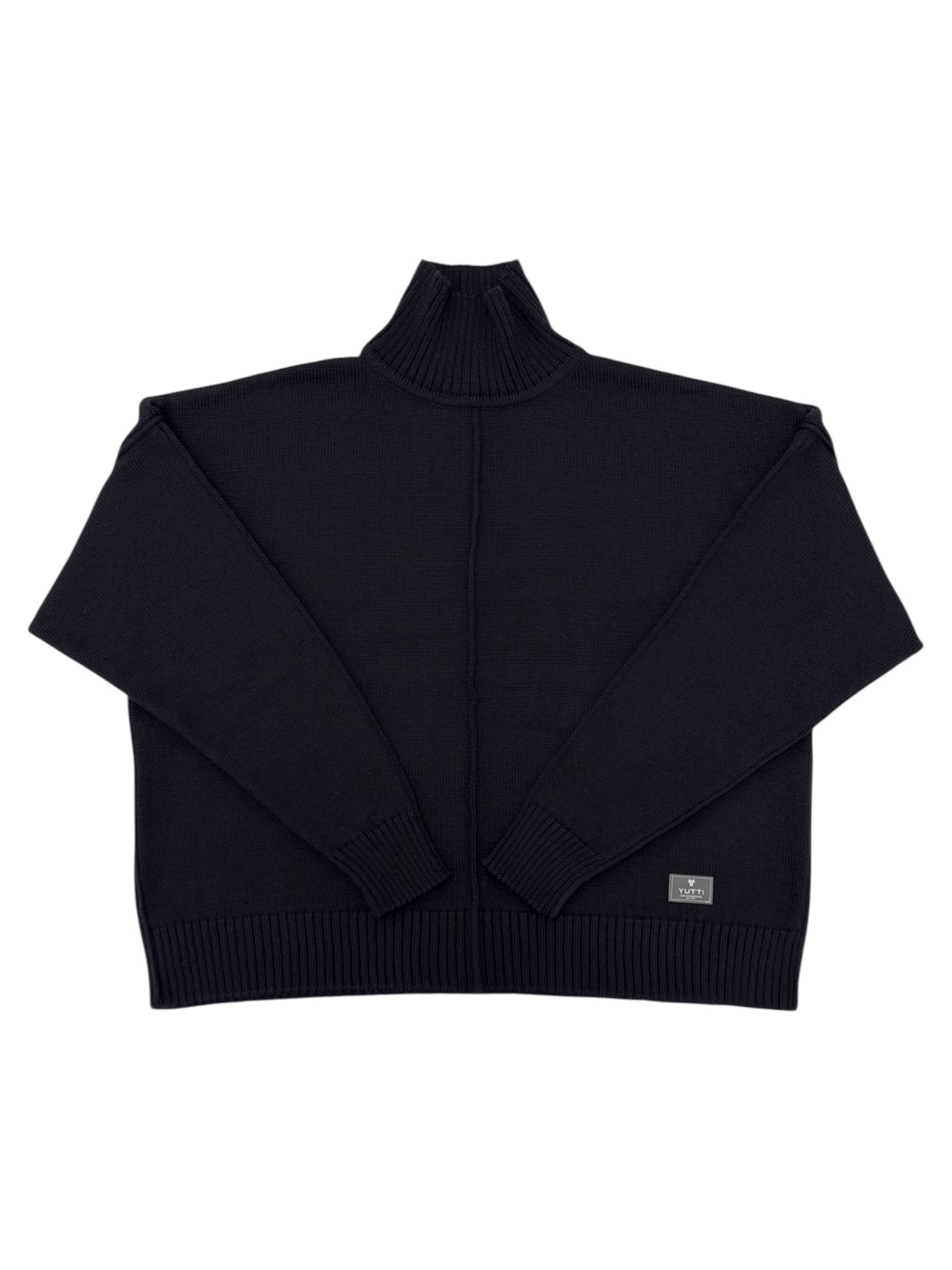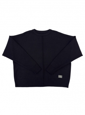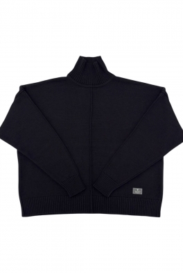 Укороченный джемпер с удлиненным рукавом, декоративными строчками и воторником-стойкой в черном цвете. Связан гладью из мягкого смесовой шерсти мериноса.