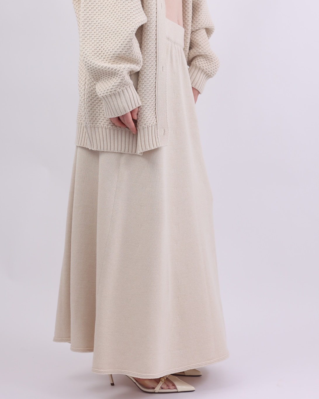 Юбка годе из мягкого смесового хлопка в кремовом цвете. Расклешенная от линии бедер.