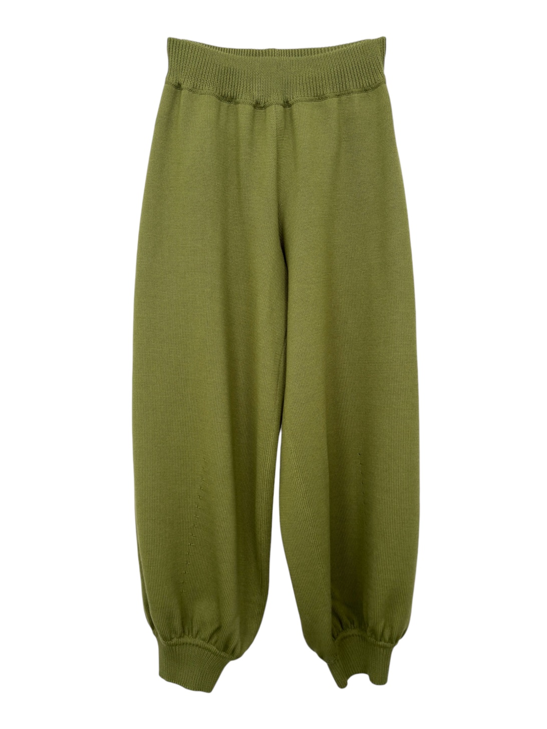 Брюки-алладины из шерсти мериноса в цвете фисташка. Объемная форма с зауженым манжетом.