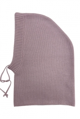 Универсальный капор с широкой резинкой по лицу и шнурками, вязка гладью.