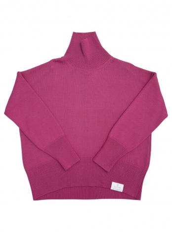 Базовая шапка бини из хлопка в цвете фуксия. Вязка резинкой 2:2, макушка стянута.