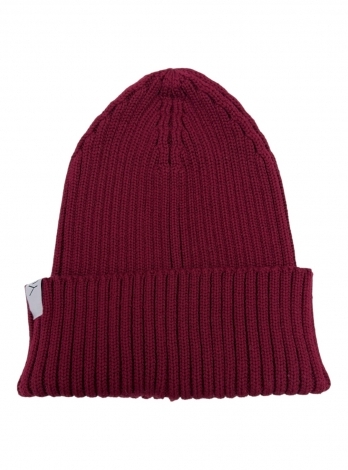Базовая шапка бини из хлопка в цвете марсала. Вязка резинкой 2:2, макушка стянута.