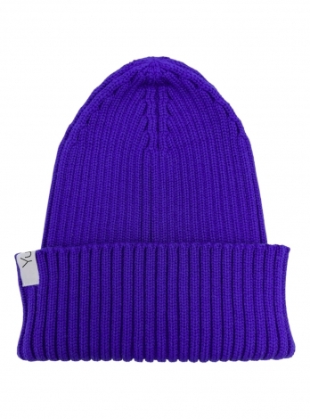 Вязаная шапка бини василькового цвета – универсальный базовый аксессуар, который подойдет к весеннему и летнему образу. Вязка резинкой 2:2, макушка стянута.