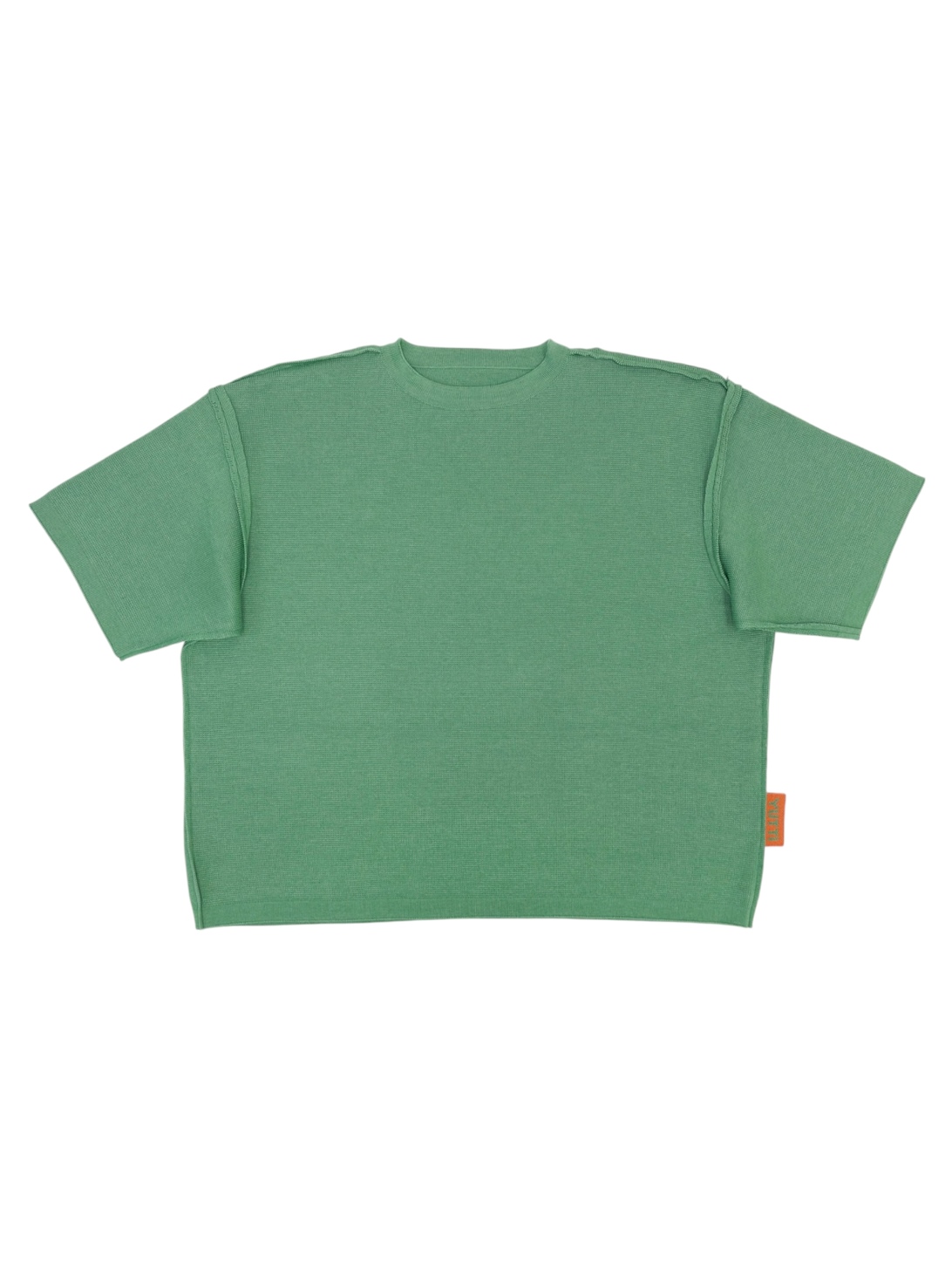 Футболка свободного кроя, плотная, в цвете базилик. Связанная из мягкого смесового хлопка.
