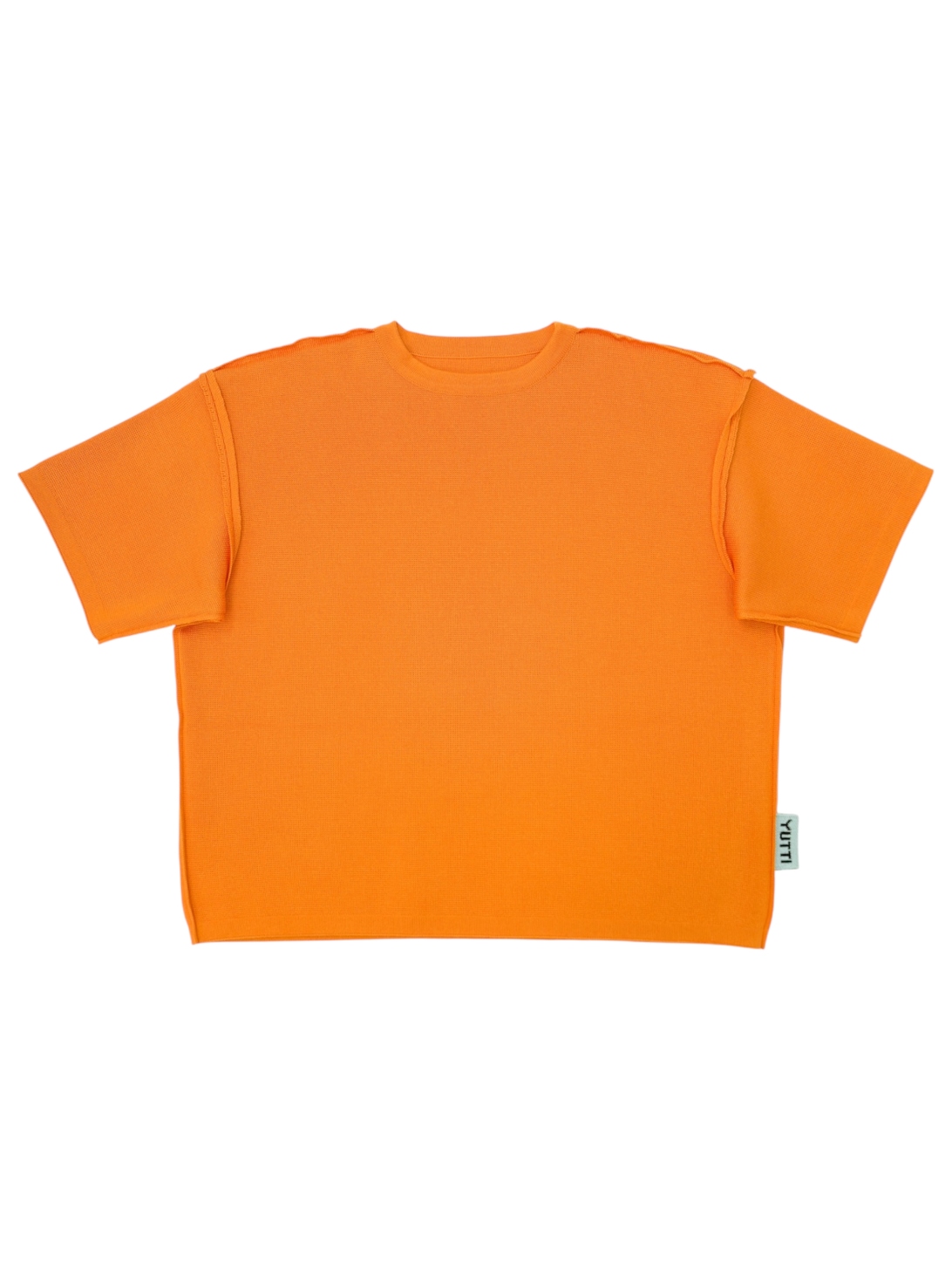 Футболка свободного кроя, плотная, в оранжевом цвете. Связанная из мягкого смесового хлопка.
