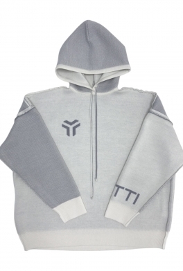 Коллекция MAYHEM (в переводе беспредел, хаос, беспорядок, разгром) это переосмысление базовых вещей и их сборки. Хаос ражденный из творчства. В этой коллекции все изделия собраны швами на ружу, а некоторые детали изнаночной стороной. Хаос внутри и хаос снаружы. Объемный худи с капюшоном. Связан из смесовой шерсти мериноса жаккардовым переплетением.