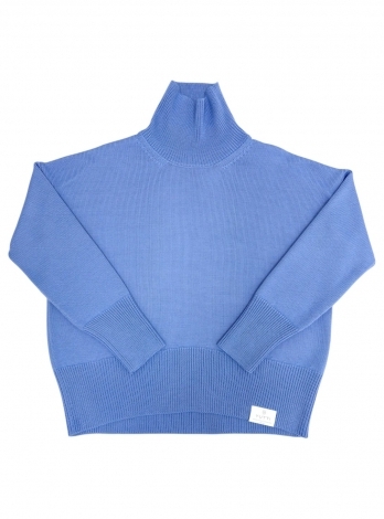 Футболка удлиненная и универсальная, свободный крой, плотная, голубого цвета. Швы собраны наружу. Связанная из мягкого смесового хлопка. Отлично сочетается с любым видом брюк, юбок и шорт. Можно носить как короткое платье.