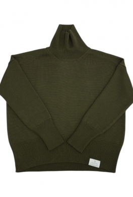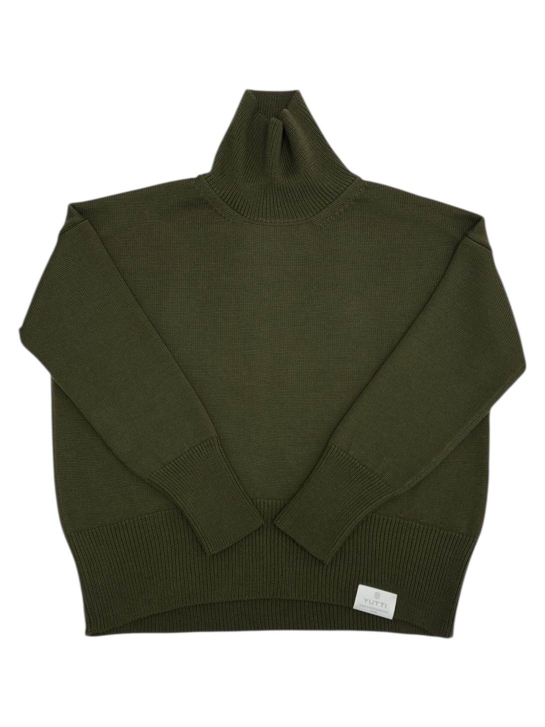 Объемный свитер гладью и удлиненным рукавом в оливковом цвете.