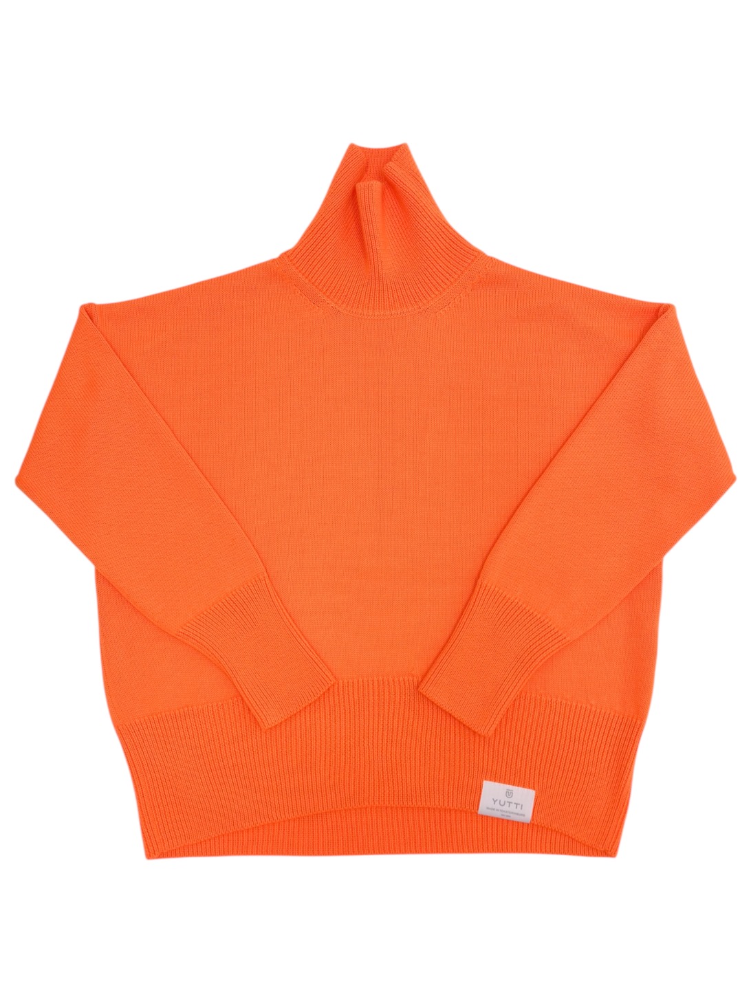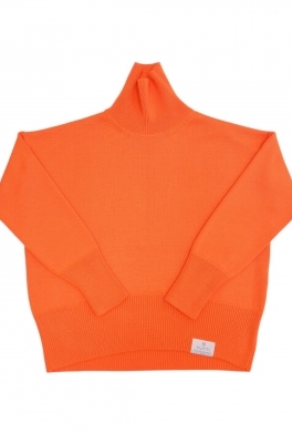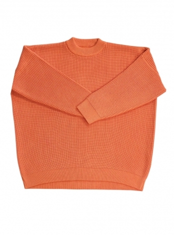 Объемный свитер гладью и удлиненным рукавом в неоно-оранжевом цвете.